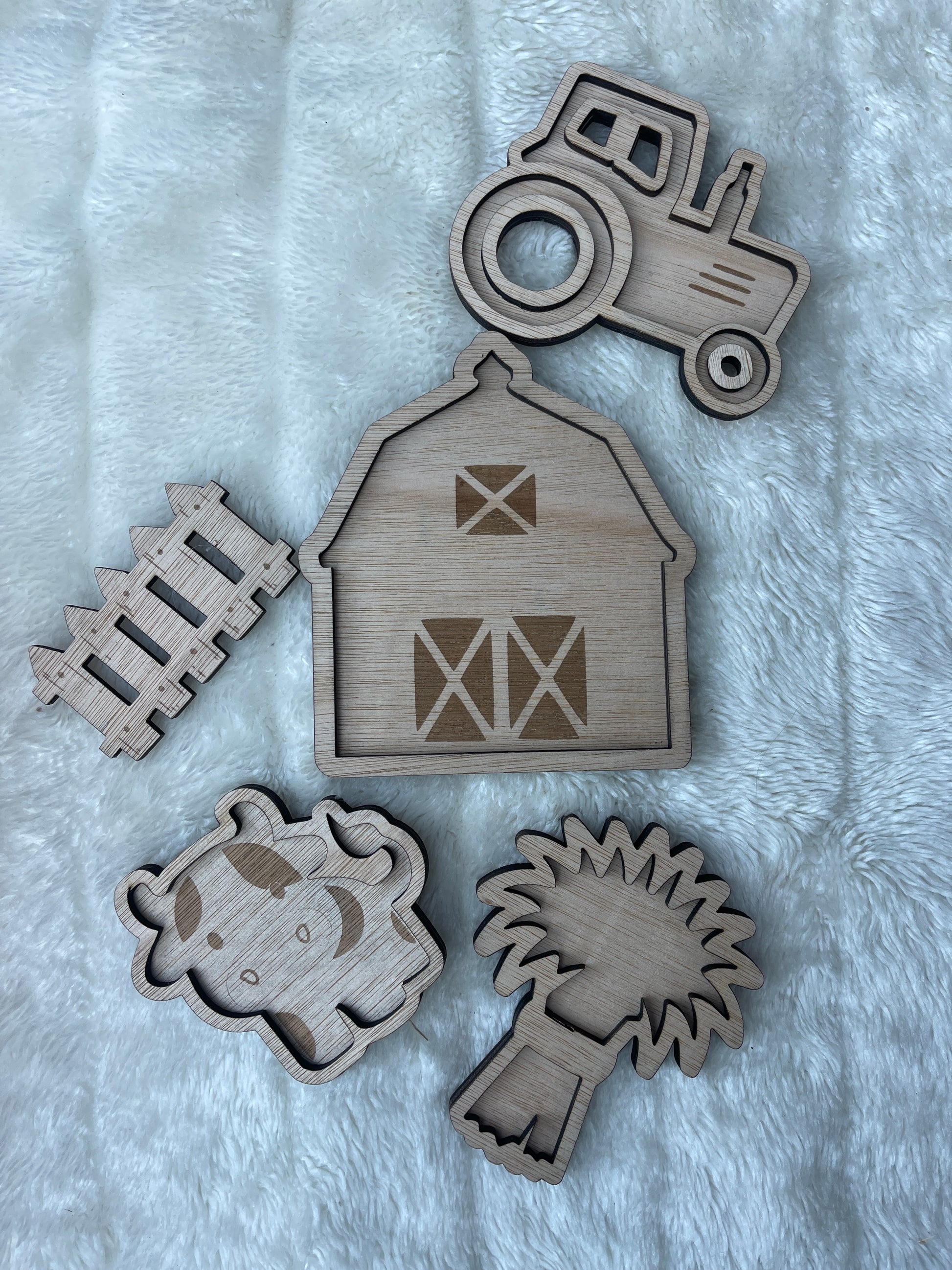 Vulvormen in het thema boerderij. Leuk voor in een sensomotorische speelbak met bijvoorbeeld speelrijst. De set bevat 4 vulvormen van minimaal 10cm en een houten hekje. (Let op! Dit is geen vulvorm)