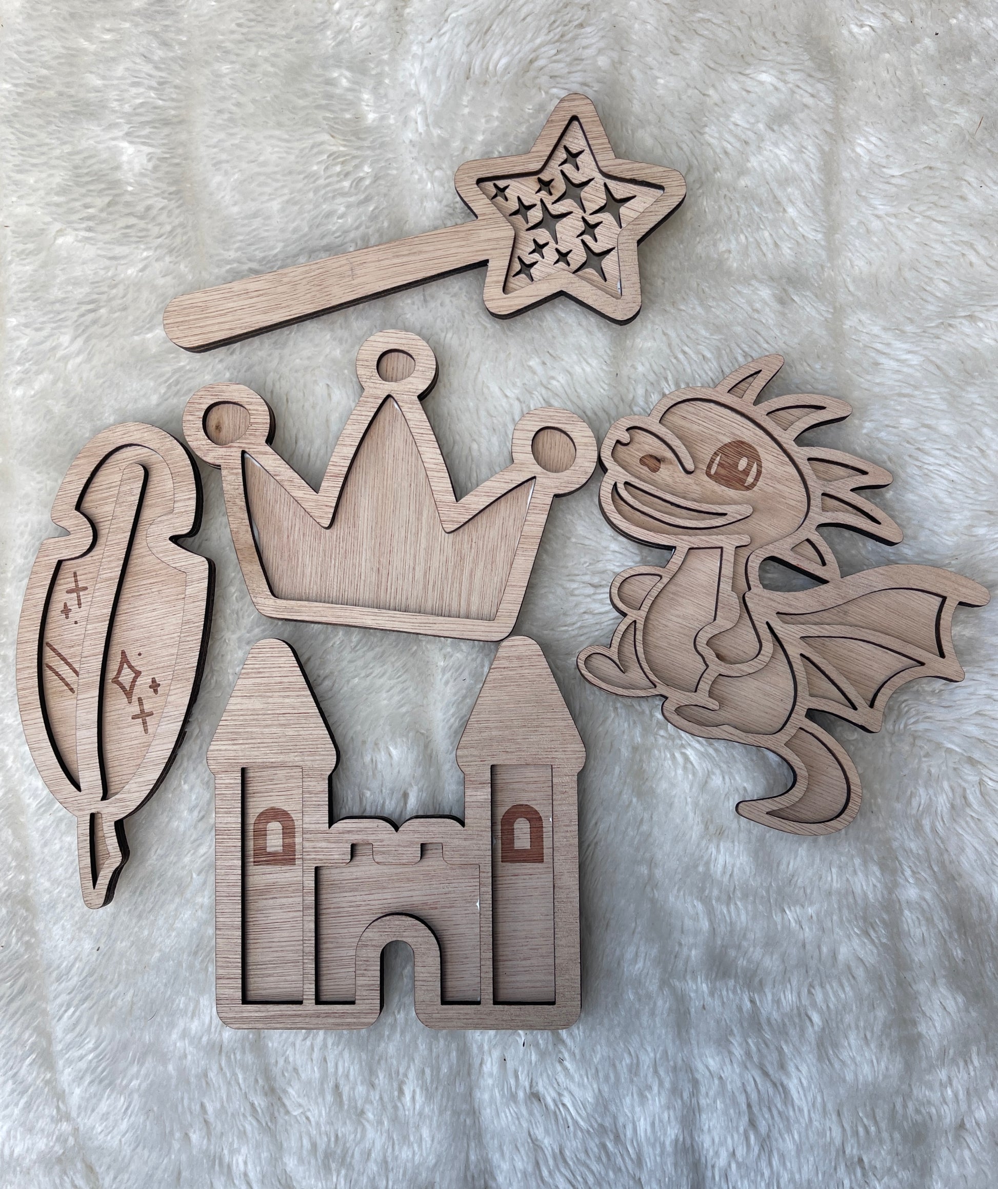 Vulvormen in het thema sprookjes. De set bestaat uit 4 vulvormen en 1 zeefje in de vorm van een toverstaf. Alle vormen zijn minimaal 10cm. Gegarandeerd uren speelplezier!